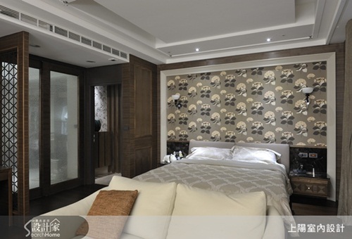 線條簡單的臥室中,襯以花卉圖樣的壁紙,淺咖啡鋪陳底色,米白與深咖啡色勾勒的花朵,替空間帶出典雅氣質的同時,也成功讓壁面變得繁花似錦,好不美麗。
