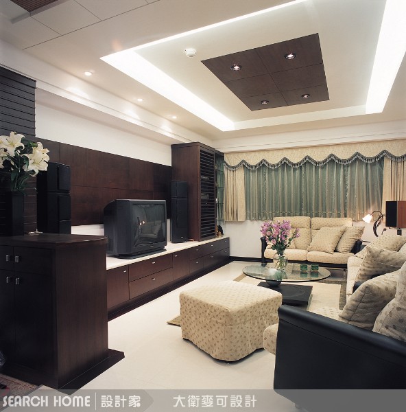櫃體設計也能帶動空間的動線,比方在本案中,設計師在玄關入口的左手邊規畫了一個矮櫃,不但區隔玄關與客廳空間,也解決玄關所需的鞋櫃收納空間。而沿著電視牆設計的收納,則可滿足客廳的視聽設備與其他雜物收納需求,提升整體的收納機能。