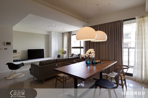公共空間是整個家居設計給人最重要的印象,設計師相準了本案良好的採光條件,於採光面開設大面積落地窗,讓室外的自然採光能夠充分進入空間,白天的時候不用開燈也很明亮舒適。